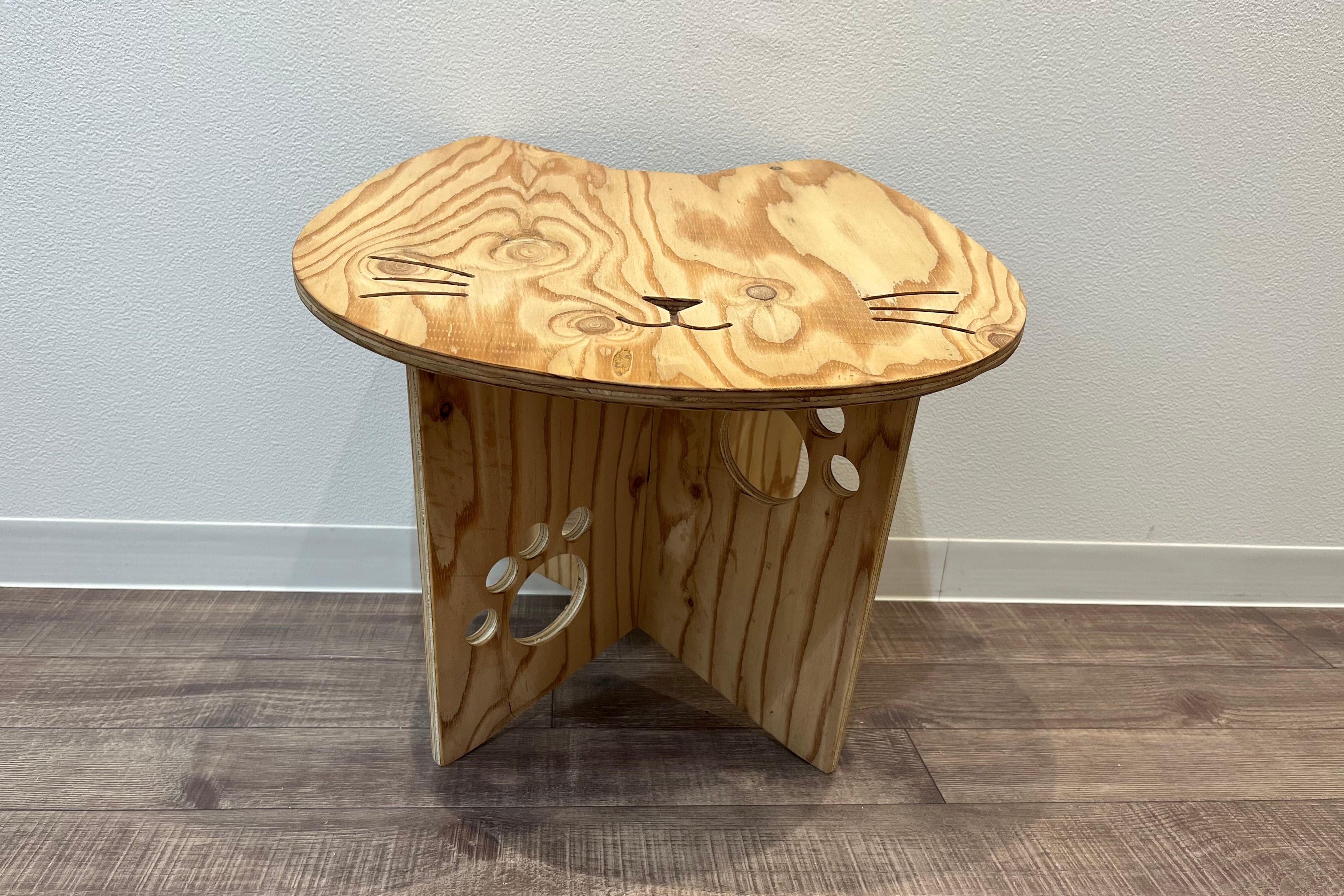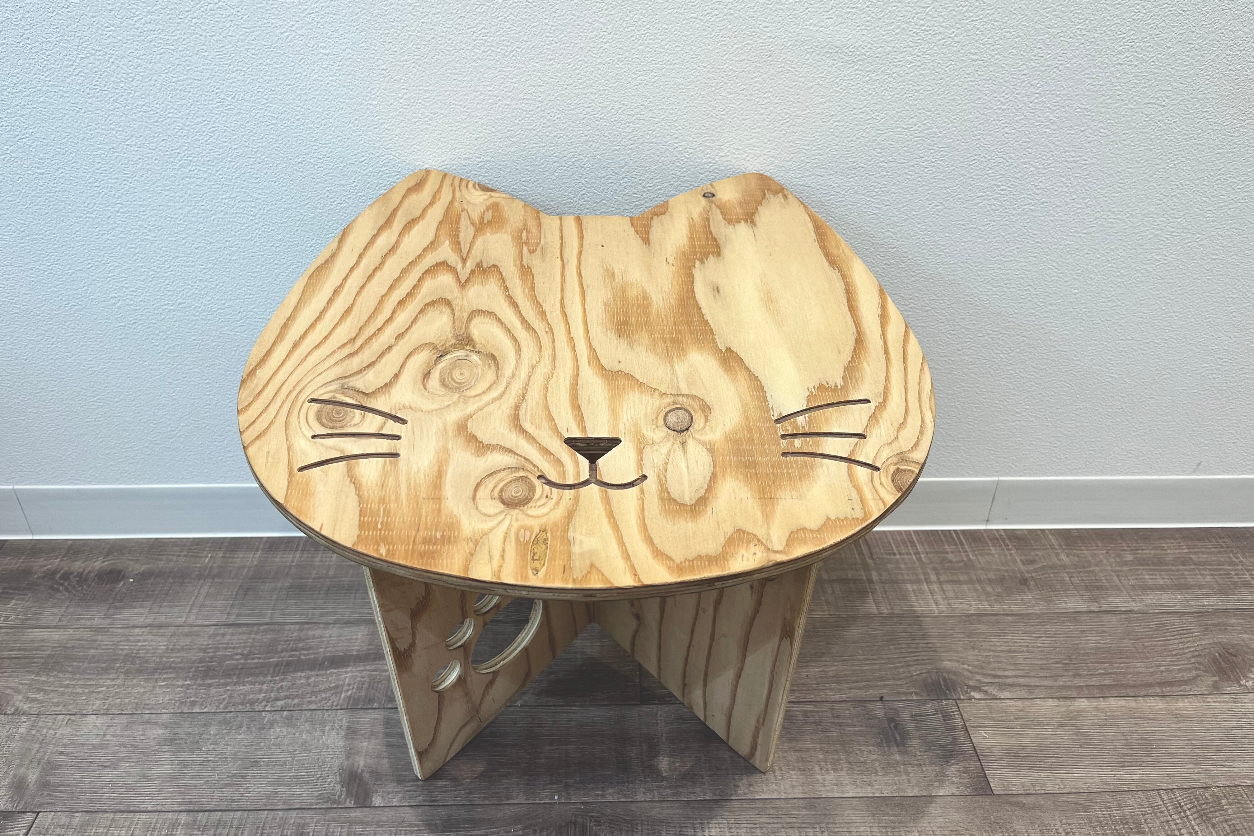 にゃんこテーブル天板の顔にくり抜いた鼻とヒゲを彫刻し、さらにかわいくなって登場!!