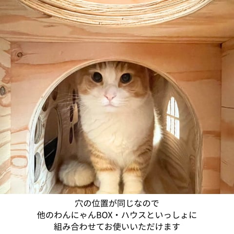 ※にゃんこBOX・トンネルとはサイズや穴位置が異なります。組み合わせてお使いになる場合は【わんにゃんBOX】もしくは【わんにゃんハウス】と組み合わせてお使いください。
