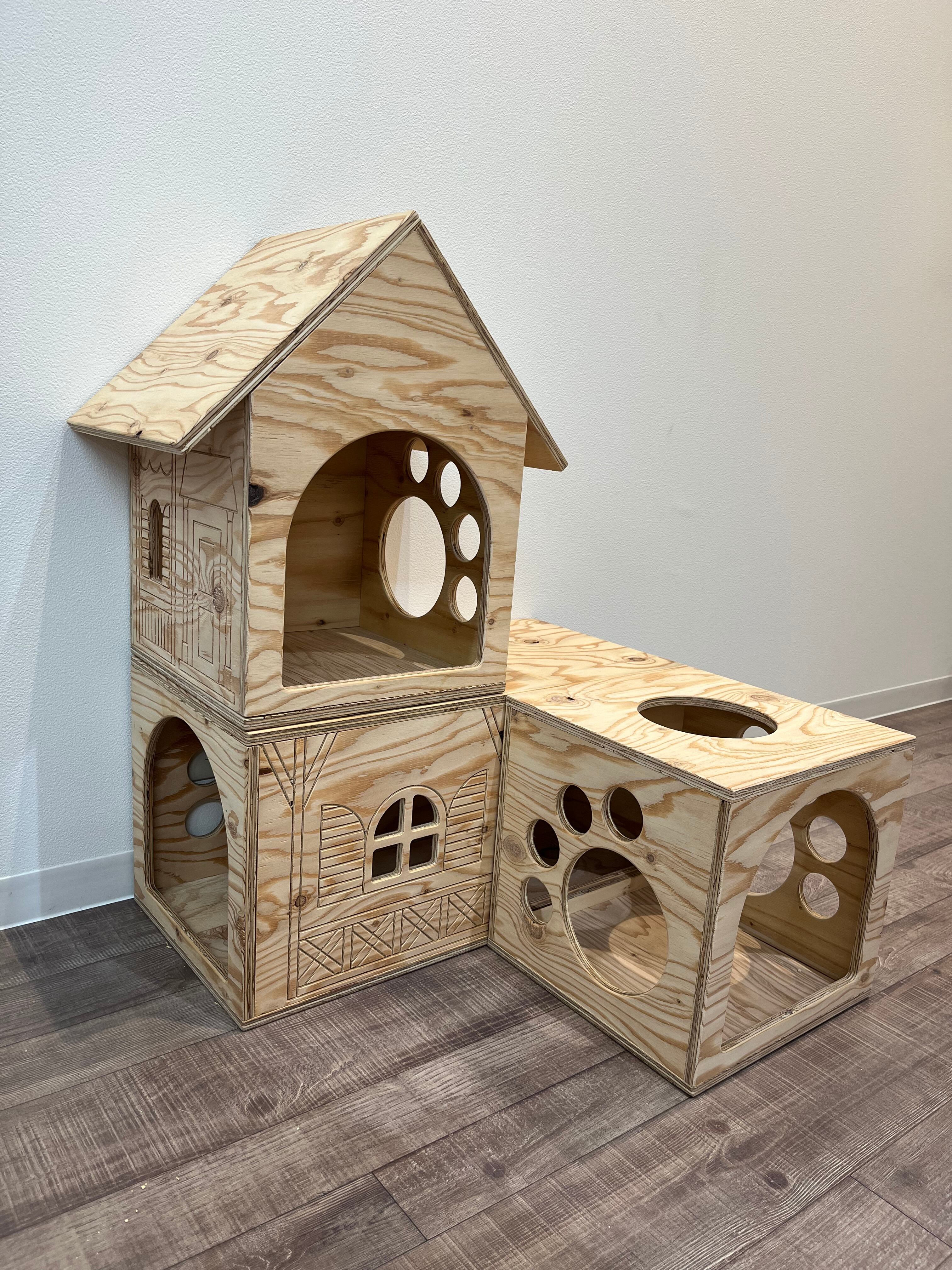 天然木を使用し、猫ちゃんが遊んでいても怪我がないよう木の切り口を処理してあり、一つ一つ職人が心を込めて手作業で作っています。